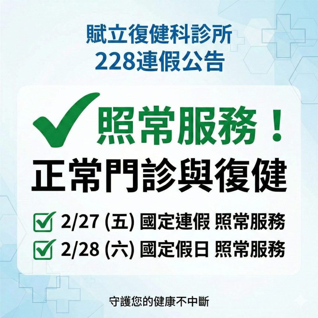 📢賦立復健科診所|228連假.照常服務公告✅